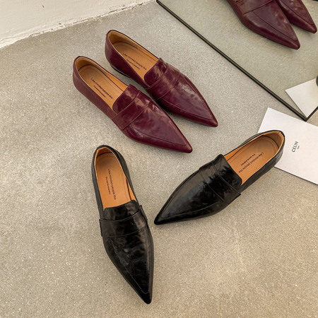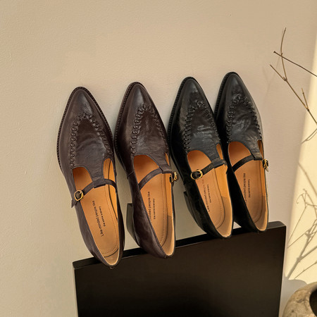 新款小方头低跟真皮女鞋